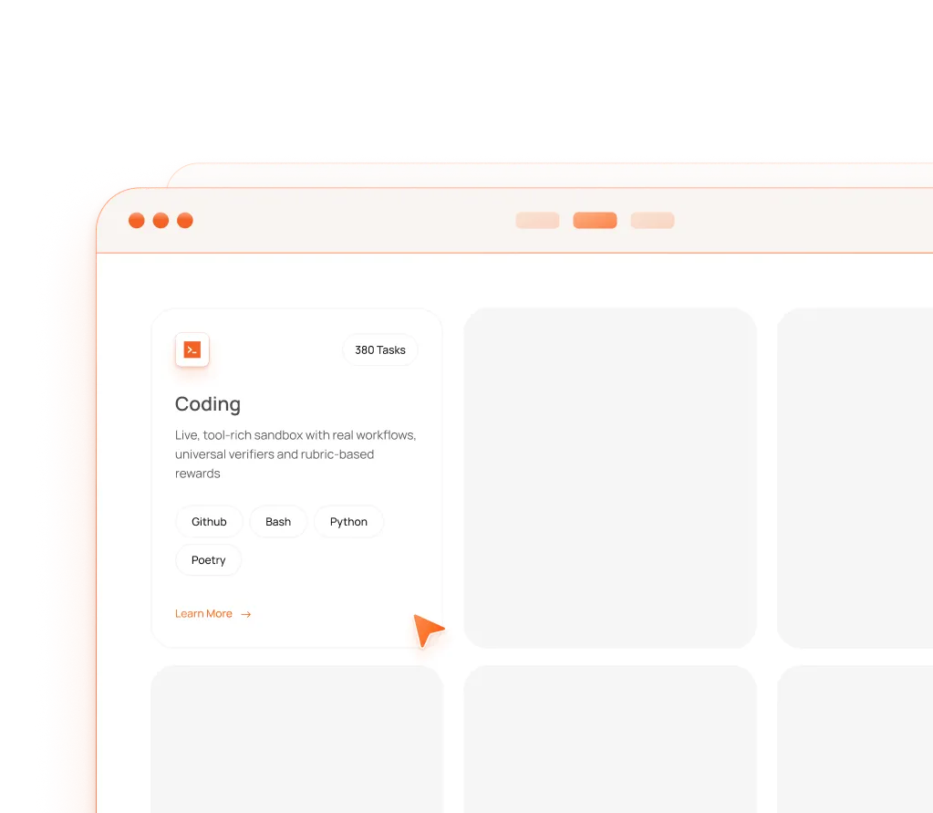 Move beyond static benchmarks with real workflows, universal verifiers and rubric-based rewards, so you can train agents that actually get work done.